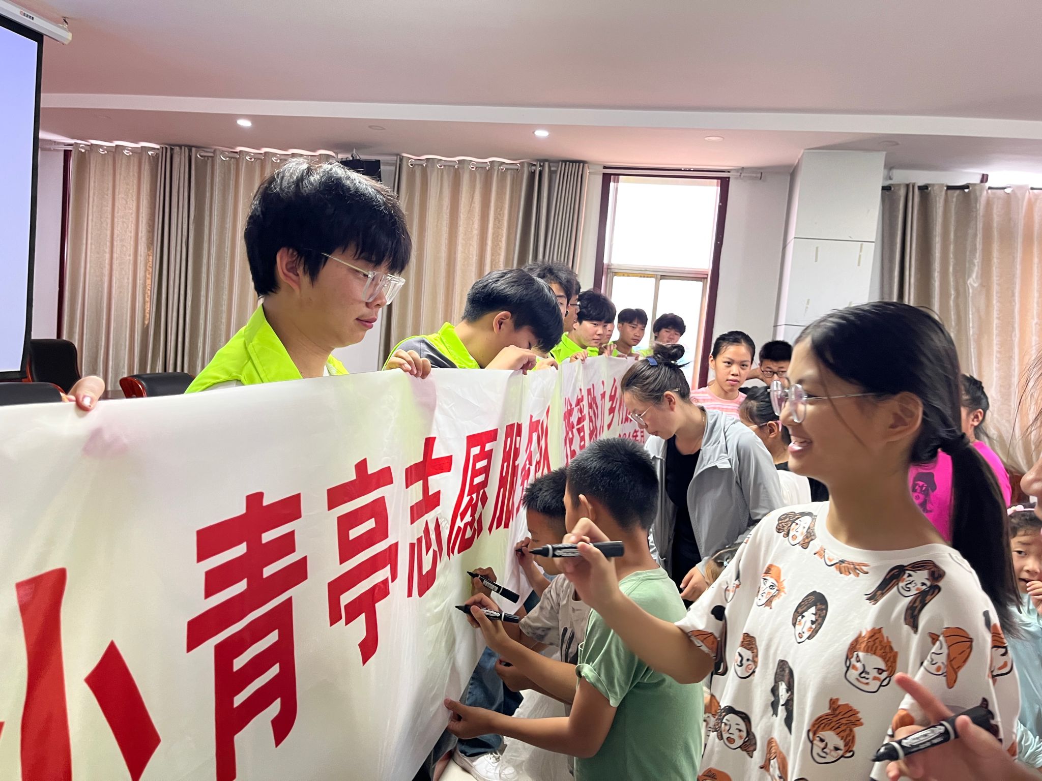随着“宣讲习近平新时代中国特色社会主义思想和党的二十大精神理论宣讲、宣传习近平总书记关于乡村振兴、‘三农’工作的重要论述”宣讲的展开,系列宣讲活动拉开帷幕。本次系列宣讲包括爱国主义教育知识、防溺水、普通话普及、预防艾滋病,防治肺结核等方面。在活动现场,实践队的同学们不仅准备了有趣的竞赛环节,还开展了横幅签名活动,通过横幅签名活动让学生们把推广普通话以及防溺水的宣传记在心头。