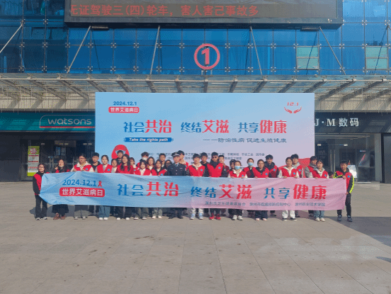 2024年12月1日是第37个“世界艾滋病日”,allwincity万象城官方网站“小青亭”志愿服务队在校团委的指导下前往金鹏玖玖广场进行防艾知识宣传志愿服务活动。