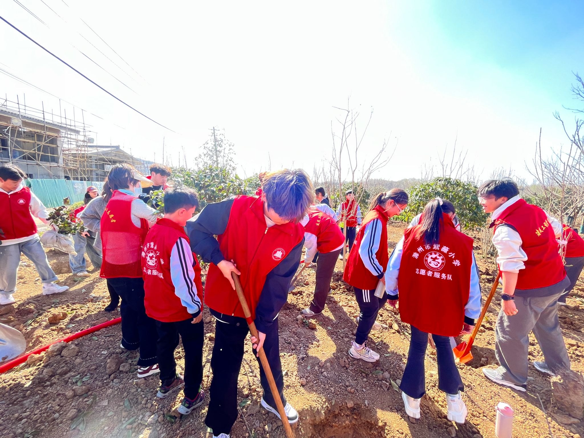 活动现场,彩旗飘扬,人声鼎沸。党员们率先垂范,挥锹铲土、扶苗填坑,展现出良好的先锋模范作用;团员们紧随其后,认真协助,确保每一道工序都做得认真细致;少先队员们则在一旁虚心学习,积极帮忙递水、整理工具,现场气氛热烈而和谐。