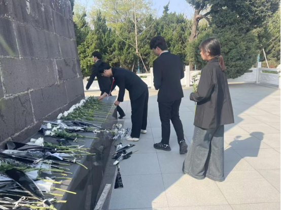 青山不老映丹心,苍松有信伴忠魂。一枝白菊饱含对烈士的崇高敬意和深切缅怀,学员们整齐列队,向纪念塔献花。献花后全体学生肃立于庄严的纪念碑前,向为民族独立、人民解放英勇献身的革命先烈默哀致敬。