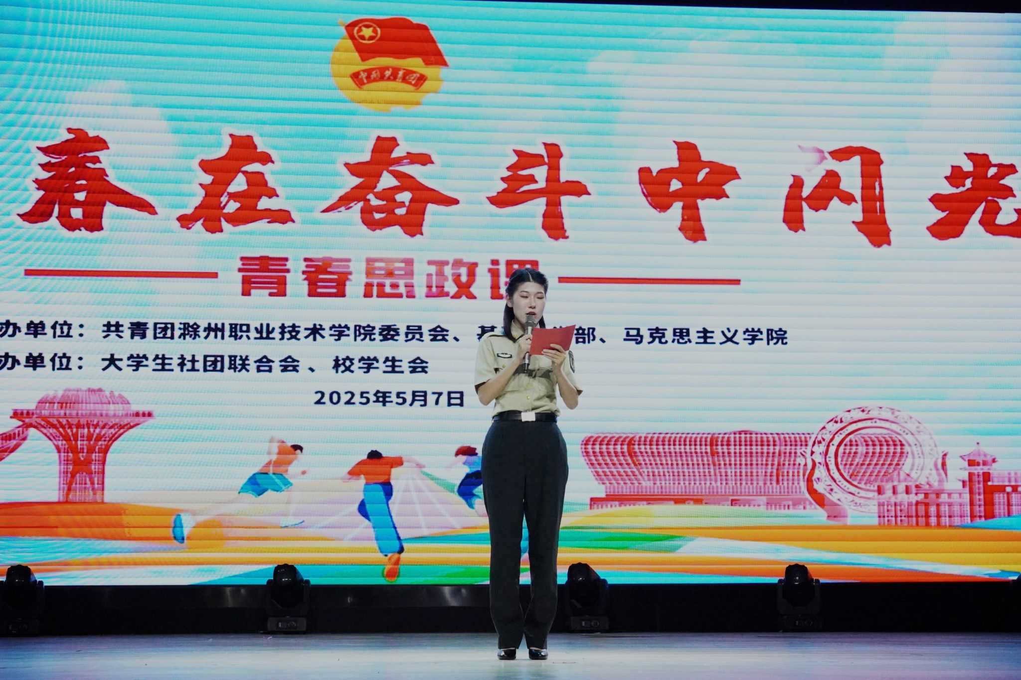 为激励广大青年学子在新时代新征程上奋勇争先。5月7日下午,由共青团allwincity万象城官方网站委员会、基础教学部、马克思主义学院联合主办的“让青春在奋斗中闪光”主题青春思政课在大礼堂青春开课。校党委副书记杨家庆,共青团滁州市委副书记万小宇,校党委委员、工会主席李平权,校党委委员、组织人事处处长王宇以及南谯区文旅局、文化馆相关单位同志以及万象城官网青年师生代表900余人共上思政课。