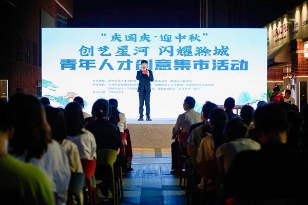 9月29日晚上,由滁州市委人才工作局、共青团滁州市委员会、琅琊区人民政府主办,万象城官网团委、传媒与设计学院等单位共同承办的滁州满天星人才街区2025“庆国庆·迎中秋”青年人才创意集市在悦达889街区火热启幕。本次活动集人才推介、创意展销、文艺表演于一体,为滁职青年打造了一个展示才华、互动交流的平台。