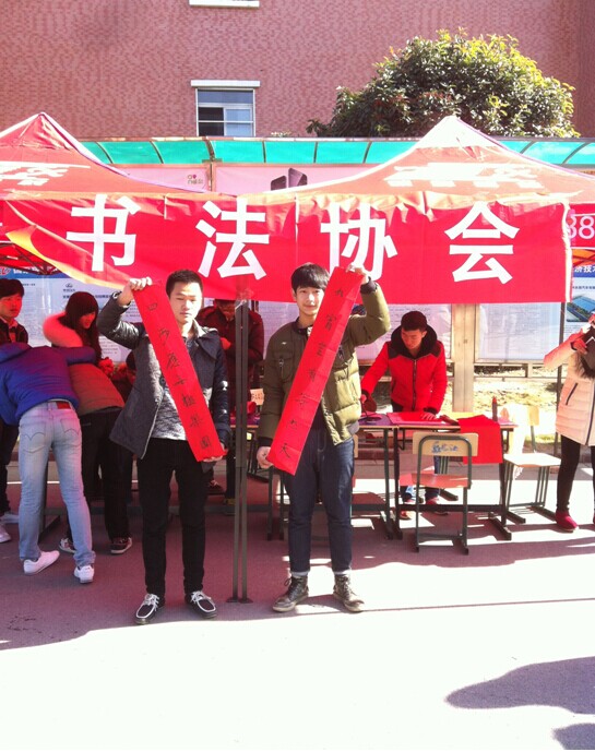 活动开始不久,参观的学生越来越多,热闹非凡、人头撺动,同学们游览在现场四周挂满的书画作品中。2014年12月26日—30日,书法协会又在女生宿舍一号楼下进行了春联送回工作。一排书桌画案当中摆开,几位书协同学现场挥笔,送春联,写对联,同学们兴高采烈,奔走相告,争先恐后,花1元钱挑选自己喜爱的作品,拿到对联作品的同学无不欢欣鼓舞。很多同学在前期的活动中报了名,也来到了现场领取自己的春联。活动现场书协的成员们详细的向同学们介绍了此次的活动公益性,不少同学听完以后觉得花这1元钱很值,都点头称赞。