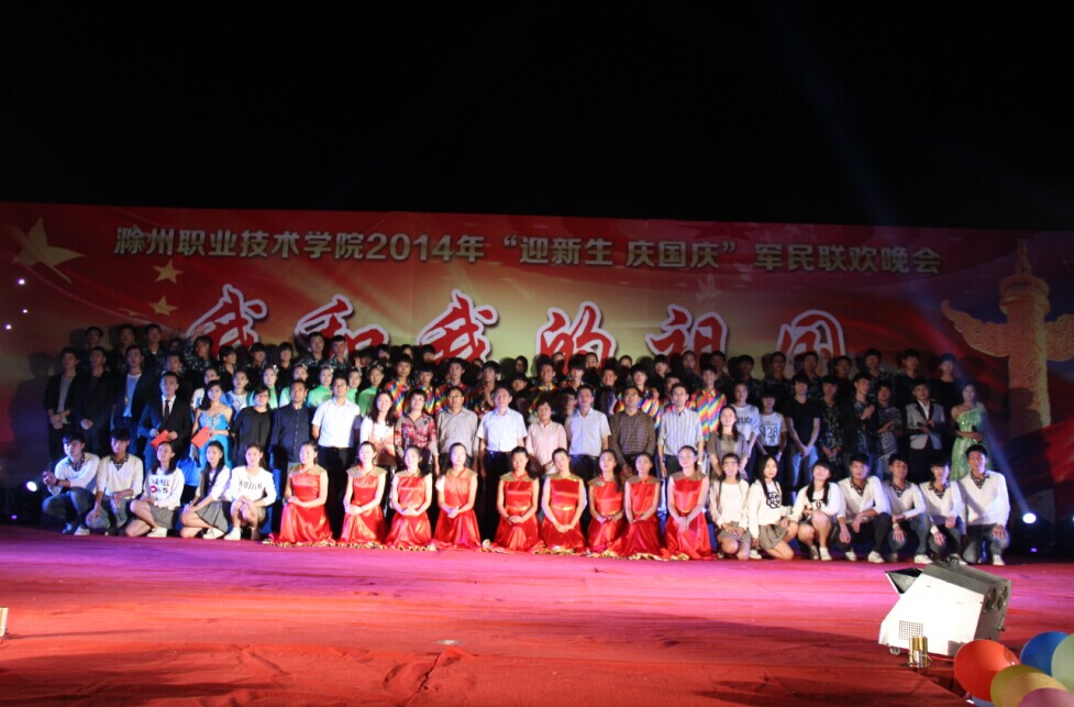 9月25日晚,由院团委主办、中国移动公司协办的“我和我的祖国”2014年迎新生、庆国庆军民联欢晚会在我院老操场拉开帷幕。院党委书记张勇、团市委书记孙枝娟、副院长程一斌、江洁、汪上、院长助理穆松、滁州移动分公司总经理程江、总经理助理江煜、73092部队指导员郭凯、以及各系、部、处室领导与我院大一新生一同观看演出。