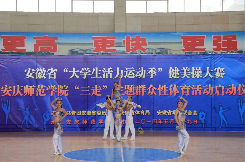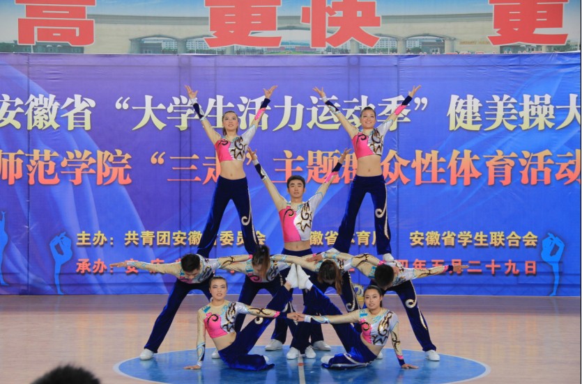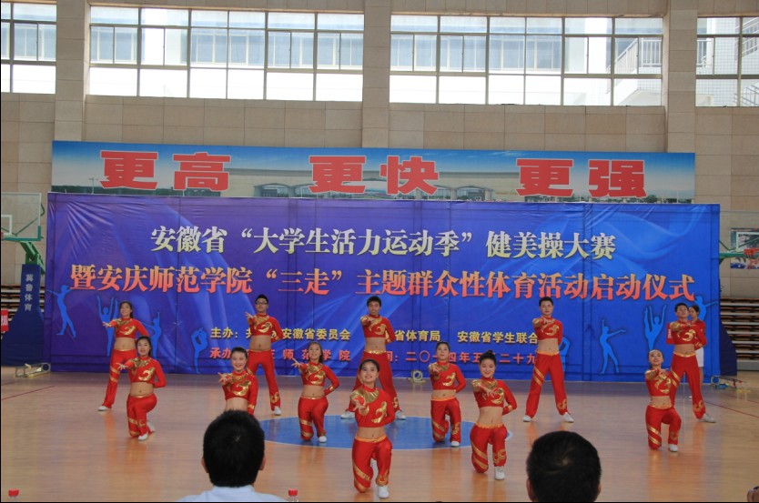 5月28日—29日,由共青团安徽省委员会、安徽省体育局、安徽省学生联合会主办,安庆师范学院承办的安徽省“大学生活力运动季”健美操比赛在安庆师范学院体育馆隆重举行。allwincity万象城官方网站运动健儿在院团委刘杰、基础部王厚红的带领下,参加了此次比赛。