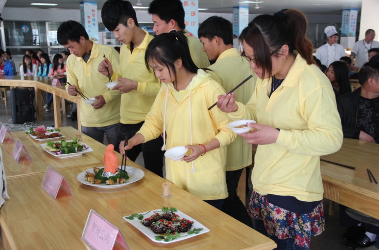 4月23日下午1点,第二届大学生美食节系列活动之“厨神入化”食堂厨师厨艺大比拼在新食堂三楼拉开了序幕。本次比赛邀请了院团委书记王蓓蓓、副书记刘杰,后勤服务公司副经理王立新、后勤服务公司王书杰老师以及由各个系学生代表组成20名的大众评委。