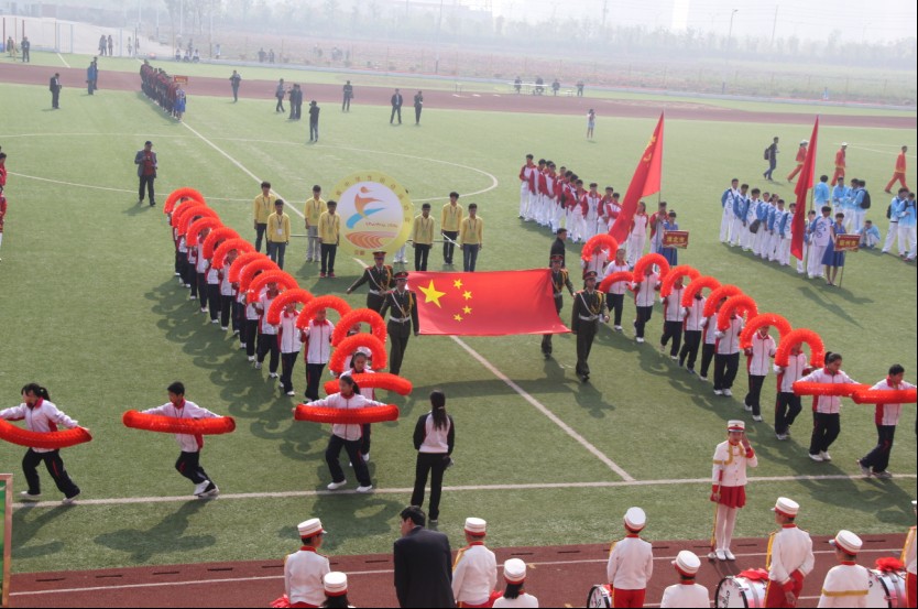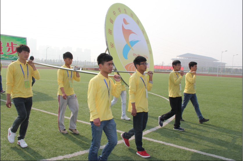 各市运动员方阵在我院青年志愿者的引导下,身着各色的服装,喊着嘹亮的口号,伴随着雄壮的运动员进行曲,迈着稳健的步伐展现他们运动的活力以及比赛的热情。