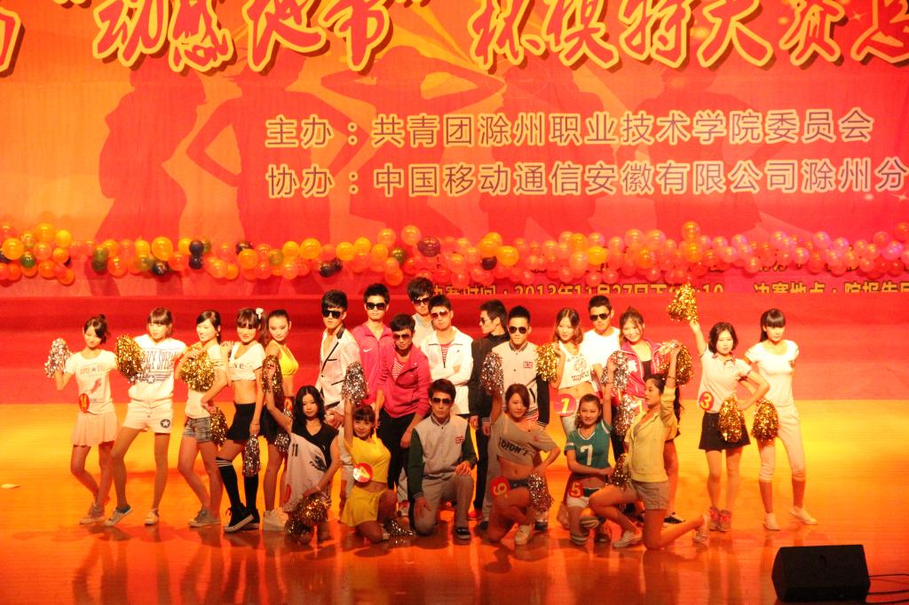 11月27日下午3:10,由院团委主办的第一届“动感地带”杯模特大赛总决赛在学院报告厅隆重举行,院团委书记王蓓蓓,副书记刘杰,院督导室葛桂云副教授,滁州移动公司市区营业部副经理张峰,国际运动舞蹈联盟国际级考评官赵煜,琅琊区文化馆工会主席关炜吕氏春秋文化传媒有限公司艺术总监吕军民,上海皖谯文化传播有限公司经理国家级摄影技师稽侃担任本次大赛的评委。