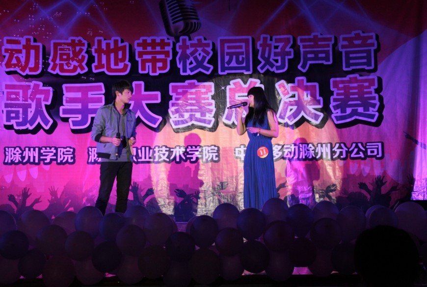 2013年10月26日晚上7点,由我院和滁州学院滁州移动公司共同举办的滁州市“校园好声音”总决赛在滁州学院会峰校区水上报告厅隆重举行,我院选派了10名同学参加此次比赛。我院团委书记王蓓蓓、团委朱婷婷老师作为评委观看了此次比赛。