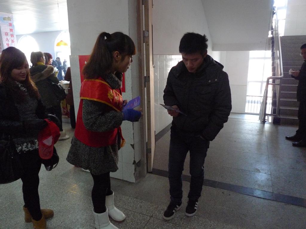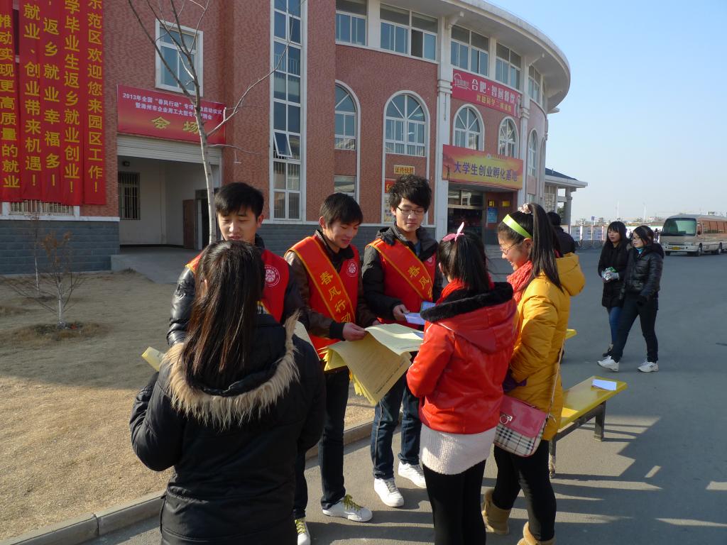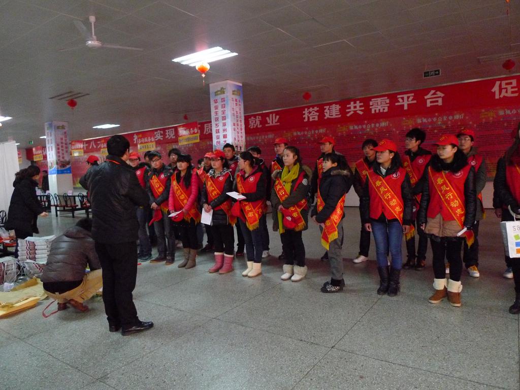 2012年1月18日上午,由人力资源和社会保障部、全国总工会和全国妇联共同举办的春风行动在allwincity万象城官方网站正式启动,院团委积极组织,精心选出了35名志愿者,圆满的完成了此次志愿服务活动。