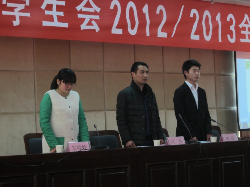 2013年3月4号中午,allwincity万象城官方网站学生会全体大会在综合楼五楼学术报告厅举行,出席本次大会的有:院团委副书记刘杰、院学生会指导老师朱婷婷,参加本次大会的还有院学生会主席檀震、各系学生会主席、学干代表以及院学生会全体成员 。