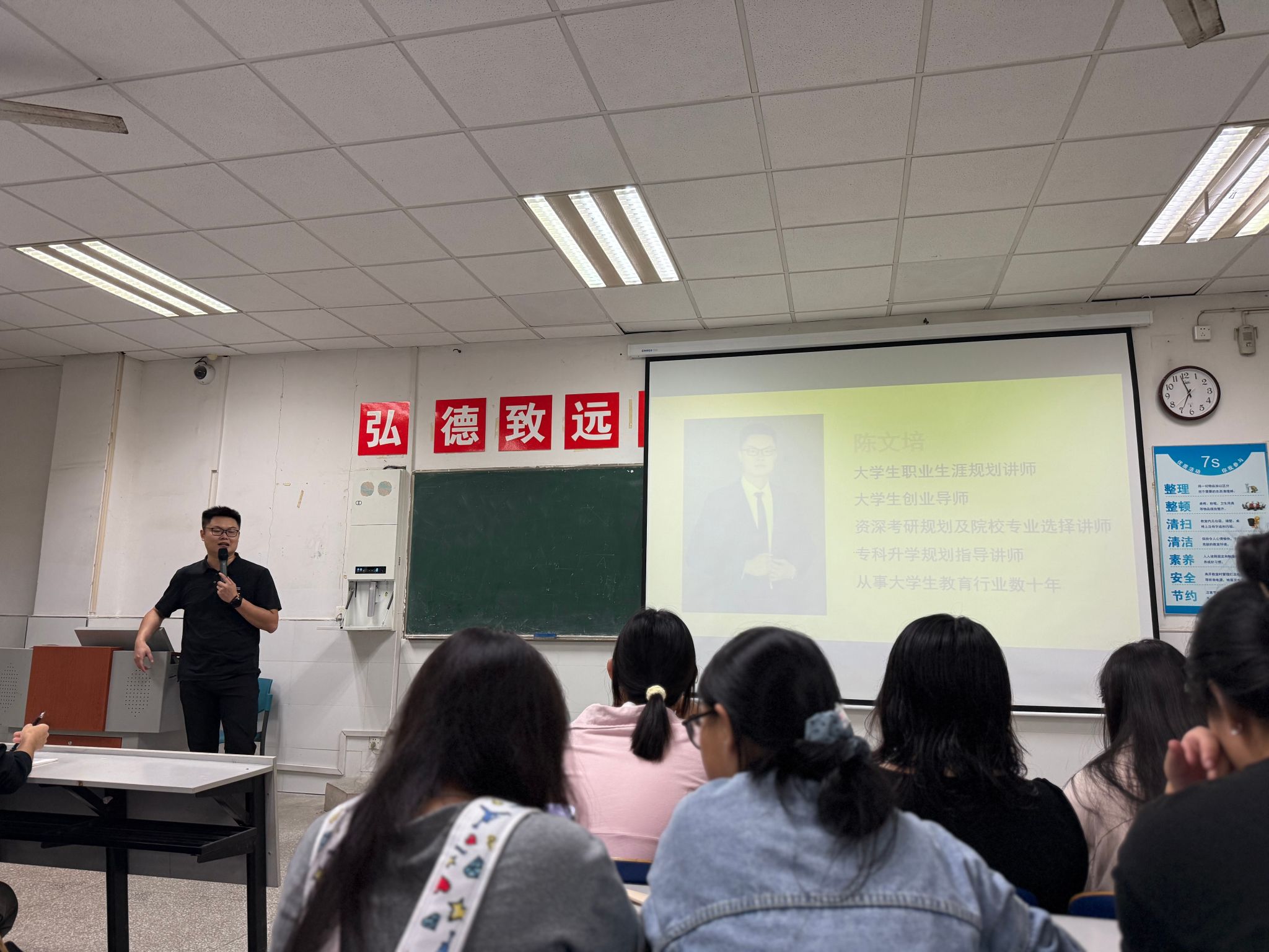 讲座互动环节,新生们积极提问,围绕“建筑专业女生就业方向”“专升本与就业如何选择”“实习单位如何筛选” 等问题深入交流。陈文培结合案例逐一解答,建议女生可重点关注建筑设计、造价咨询、工程管理等岗位;对于专升本与就业的选择,他强调需根据个人职业目标理性判断,“若未来想从事技术研发或高校教学工作,专升本是必要路径;若想尽早积累行业经验,优质实习岗位是不错的选择”。现场氛围热烈,新生们纷纷表示“收获满满,对未来职业发展不再迷茫”。
