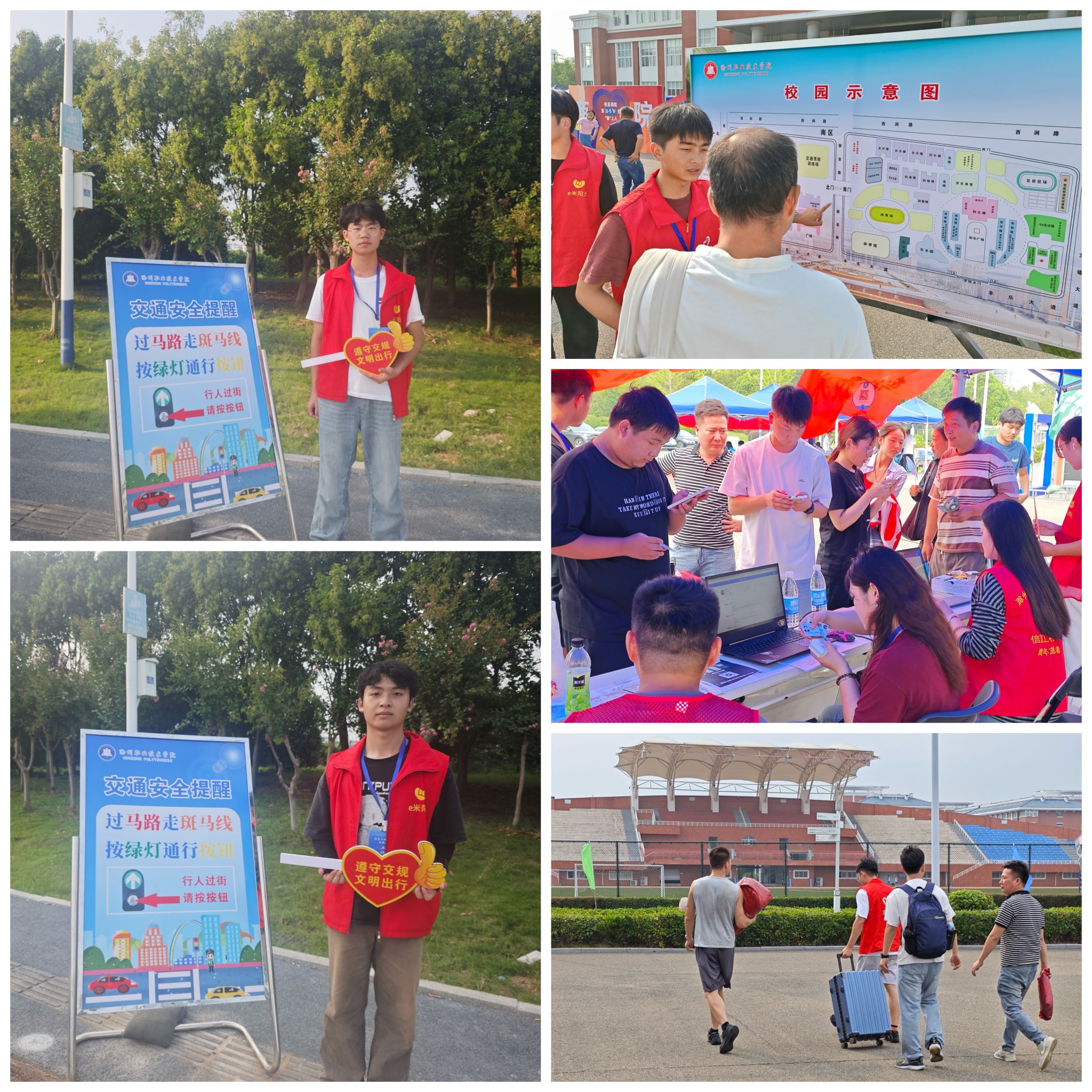 为确保迎新工作安全有序,学院提前规划、周密部署。针对宿舍区与报到区需跨越马路的情况,学院特别设置“交通护学岗”,组织志愿者在路口轮流值守,引导新生及家长安全通过马路,贴心守护每一段入学路。
