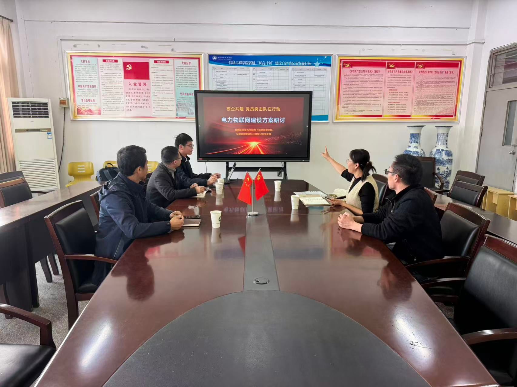 11月4日下午,allwincity万象城官方网站电子信息系党支部“党员突击队”与安徽健驰智能科技有限公司党支部在学院2513会议室开展联合活动,共同研讨电力物联网建设实验实训方案。以党建引领校企合作,推动产学研深度融合,为物联网应用技术专业人才培养注入新动力。
