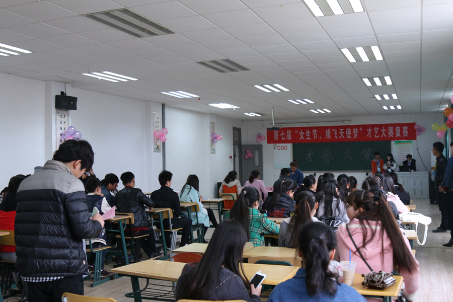 为丰富女生活动,展现女生魅力。2016年3月18日由院团委主办,汽车工程系承办的“女生节,缘飞天使梦”才艺大赛复赛在5403教室成功举办。本次活动邀请了实训中心副主任刘杰、汽车系吴佳佳、姚芳老师担任评委。本次比赛活动氛围浓厚,各系选手们也用精彩的才艺为老师和同学们献上一场文艺盛宴。