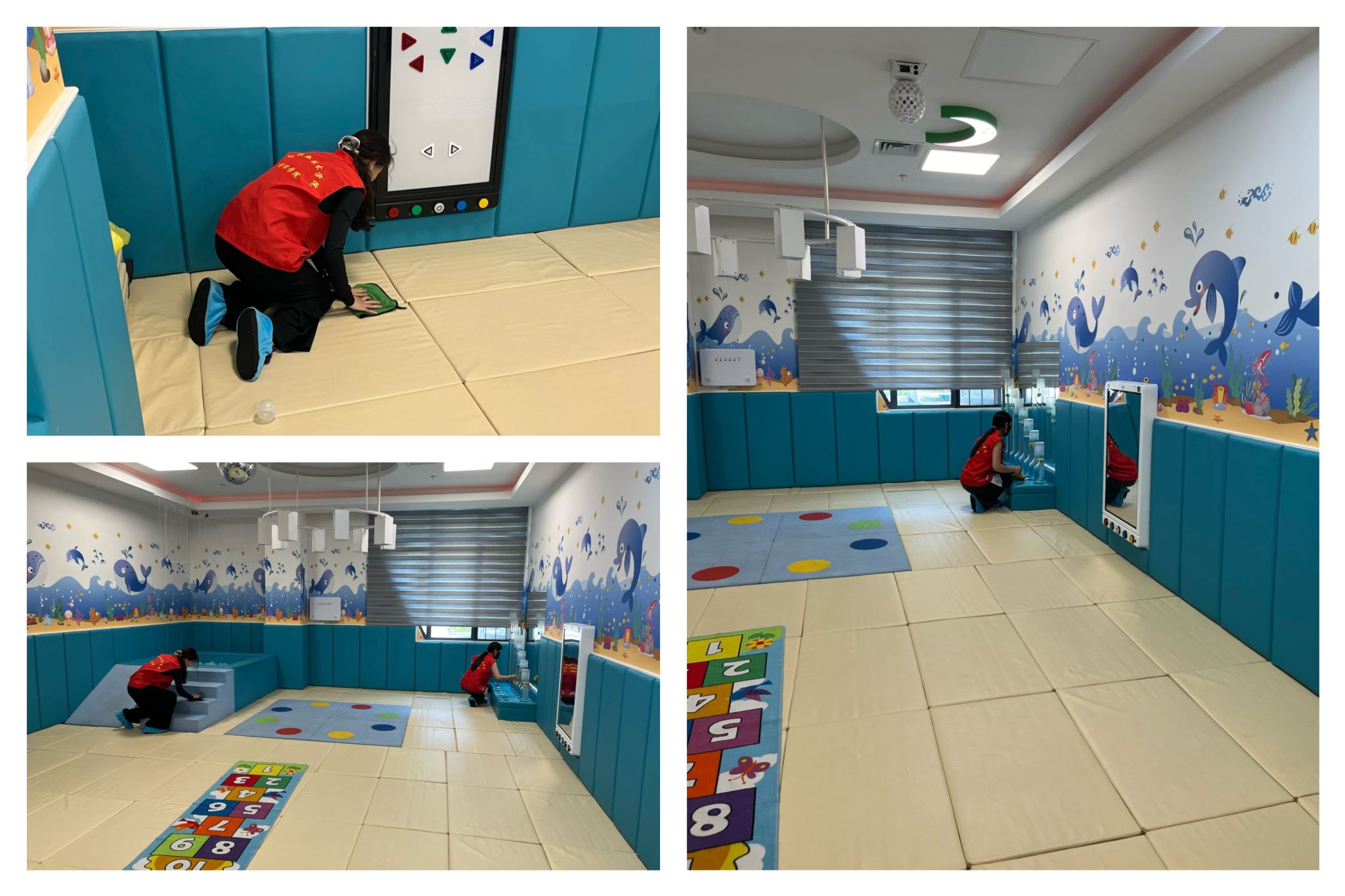 活动当天,志愿者们早早地来到训练中心,开始了忙碌而有序的准备工作。他们细心地打扫每一个角落,擦洗地面,确保环境的整洁与舒适。在他们的共同努力下,训练中心焕然一新,为接下来的活动营造了温馨舒适的氛围。随后,志愿者们与孩子们进行了丰富多彩的游戏和训练学习。在老师和志愿者的耐心引导下,孩子们积极参与,脸上洋溢着开心的笑容。志愿者们与孩子们进行互动,帮助他们提高语言沟通能力和社交能力,展现出他们的独特才华和潜力,让孩子们在轻松愉快的氛围中学习和成长。
