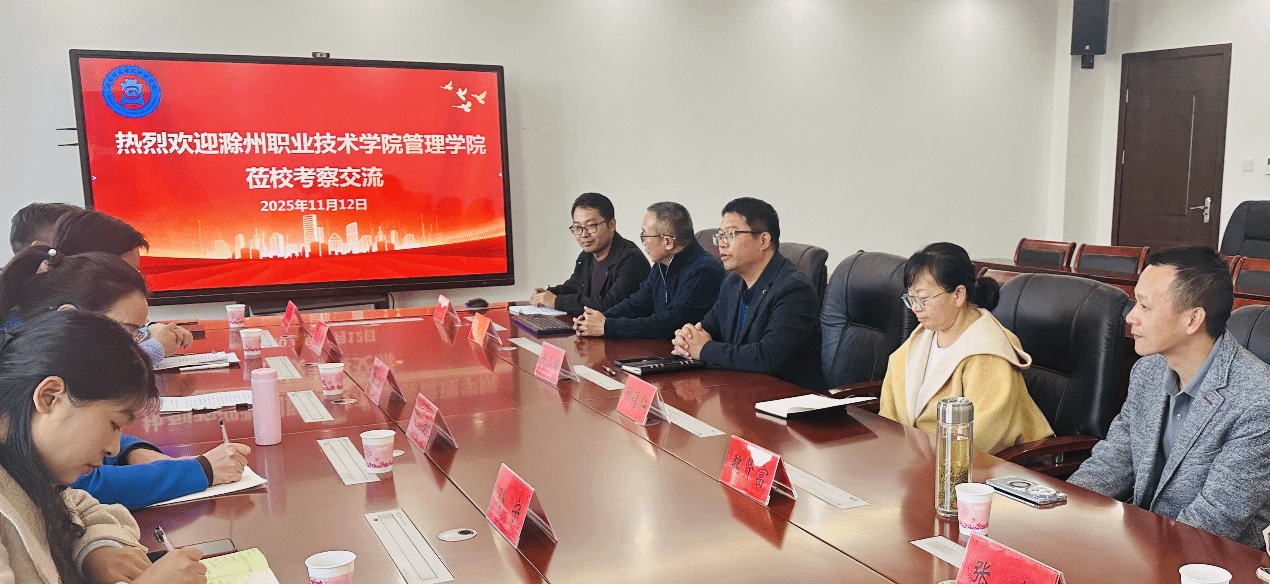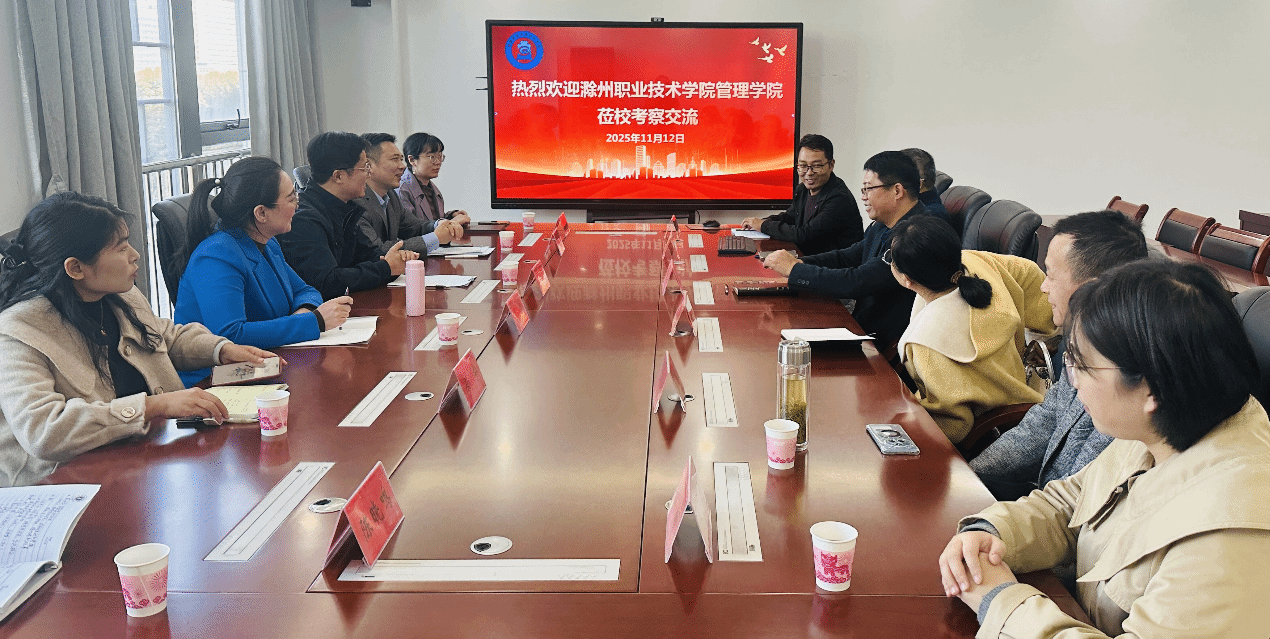 为切实做好“安科-滁职”联合培养专升本会计学专业的课程建设、教育教学等相关工作,11月12日,管理学院副院长颜洲、财务会计系主任夏敏、专升本会计学专业负责人朱永勇及部分专业教师等专程前往安徽科技学院财经学院开展考察交流活动。安徽科技学院财经学院党委书记杜小明接待了颜洲一行,财会系主任岳文忠,院工会主席、会计学专业教师陈继东,财务管理专业教研室主任钟德仁等相关负责人和专业教师参加此次活动。