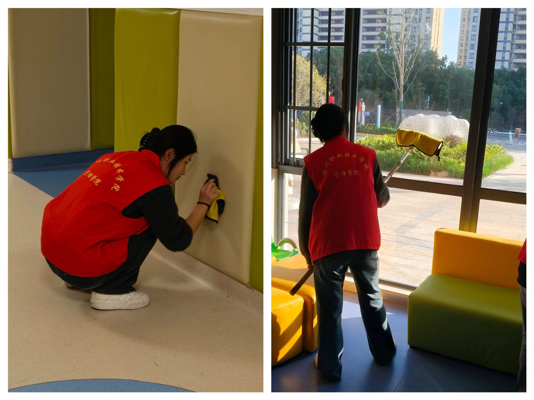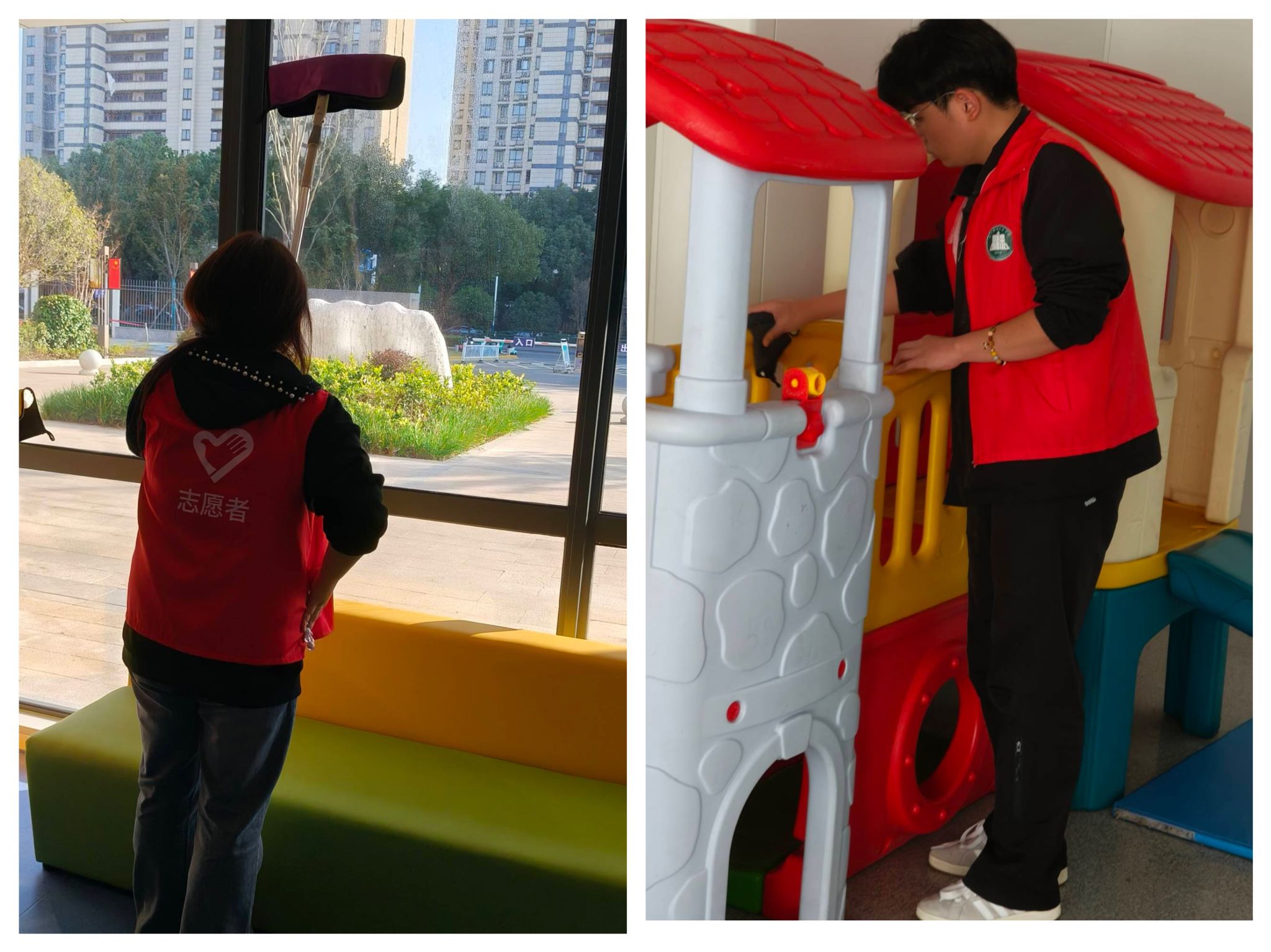 活动当天,志愿者们按时到达志愿服务区域,在医院工作人员的指引下迅速展开活动。首先,志愿者们仔细擦拭墙面与座椅等设施处存留的灰尘,为孩子们和医务人员们打造整洁的生活、工作环境。随后,志愿者们全身心投入到对“星星的孩子”的陪伴中,围绕在孩子们身旁,耐心帮助他们完成一系列康复训练动作,并与他们一起拼拼图、做游戏,现场充满了欢声笑语。服务期间,医务人员为志愿者们送上香甜的南瓜丸,可口的美食传递着彼此的理解与关怀。志愿者与医护人员的“双向奔赴”,让这次志愿活动取得圆满成功。