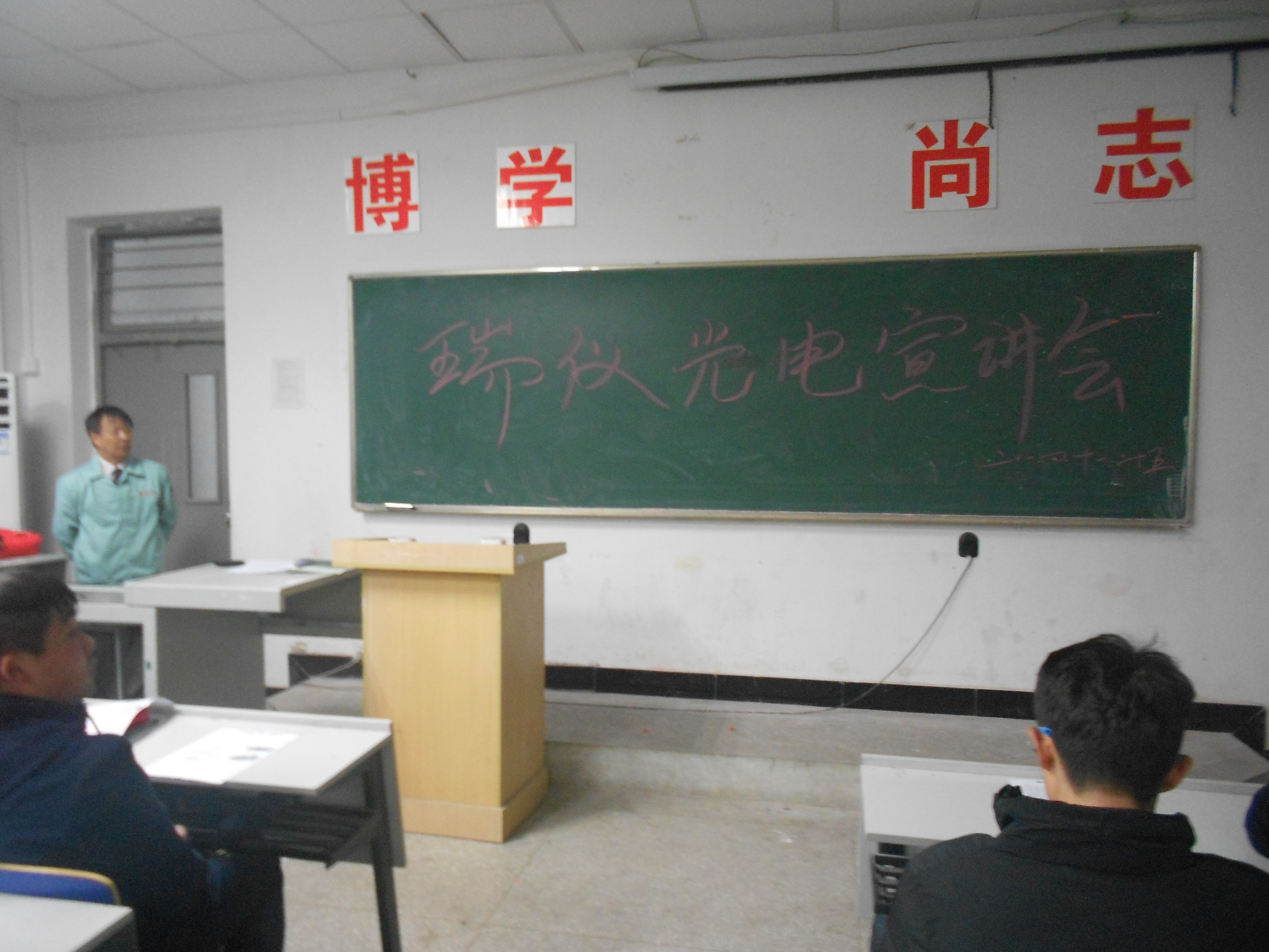 为了让应届毕业生得到更多的就业机会,同时也为了让企业能够获得更多的优质应聘者,2014年11月25日下午四点苏州瑞仪光电宣讲会在我机电系5103教室举行,一群即将毕业的年轻人聚集在这个温暖的教室,现场热烈的气氛与窗外的寒风形成了鲜明的对比。我系2015届毕业生前来聆听宣讲。