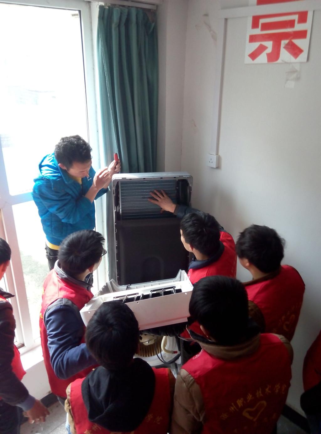 为贯彻院团委下发的“传承雷锋精神,深化志愿服务”为主题的志愿服务系列活动的通知以及相关精神,在机电系团总支的组织下,机电系13级、14级20名制冷与空调技术专业的学生,结合自己的专业知识,发挥专业技能,学以致用,为5号楼教室的空调内机做了一次清洗和保养。经过一个冬天的使用,教室里新安装的空调也该好好保养保养了!制冷专业的志愿者们在学长的带领下小心翼翼的对教室内的空调进行清洗和保养。经过一个中午的辛勤劳动,5号楼内的空调内机里的脏东西被我们的志愿者们清理干净了。