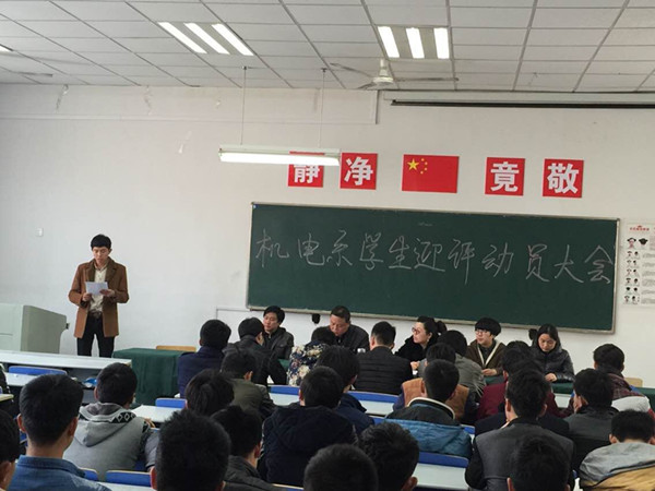 首先由我系团支部负责人谢丽丽宣读机电系学生迎评工作实施方案;接着我系团支部副书记张子帅同学宣读了倡议书,希望大家努力做到倡议书上的要求。最后,晋书记就迎评工作对大家提出了要求,介绍了学校迎评工作的进展情况,分析了迎评工作的性质、重要性以及如何开展学生迎评创优活动。迎评工作人人有责,希望同学们能够做好本职工作,为学校迎评工作作出自己的一份努力!