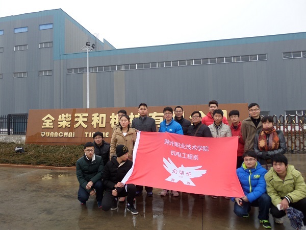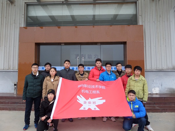 为了让全柴班的同学更进一步了解全柴公司的生产以及日常的一些工作情况, 让同学们在实践中得到启发。2016年1月11日早上8:50,在机电系电气、机电一体化等教研室主任殷大澍、冯巧红、李文萱,全柴企业班主任王超、校辅导员冯早红等老师带领下,全柴班十三名同学做了一份特殊的寒假作业——前往全柴集团公司参观学习。