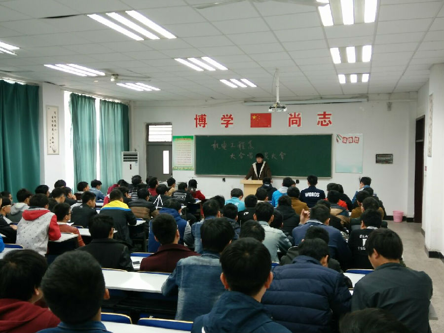 为积极配合由我院即将开始的“建党九十五周年”暨“五四青年运动”爱国主义歌曲大合唱比赛。机电系于2016年3月25日中午11:30在5102教室召开“大合唱动员大会”,参加本次动员大会的有机电系团总支负责人张文老师、学生会主席岳德辉以及全体参赛学生。