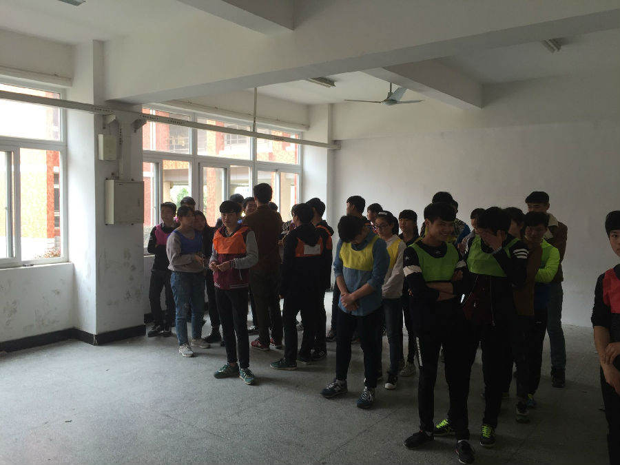 此次游戏分为两部分,第一部分是同学们通过小游戏的优胜赢得积分,获得优先进场权;第二部份是各组在特定的区域内寻找7张卡片,这期间,每组队员要相互协作,保护好自己的名牌,被撕即淘汰,找齐7张卡片的队伍获胜。2:30同学们齐聚技师学院操场,根据提前选好的分组,各自组成1, 2, 3, 4,5组,并贴上写有自己名字的名牌.五个小组先后进行了“绑腿跑”、“引导走迷宫”的较量,最后3组获得优先进场权。