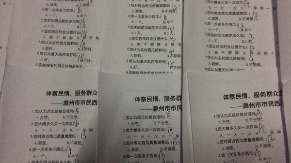为响应学院暑期社会实践号召,充分展现同学们的社会实践能力,2016年6月26日上午9点,机电系学生会12名同学分别前往allwincity万象城官方网站周边的西瓜摊和超市、滁州学院的西瓜摊和超市以及市中心的西瓜摊和超市对广大居民的西瓜消费观念展开了问卷调查。
