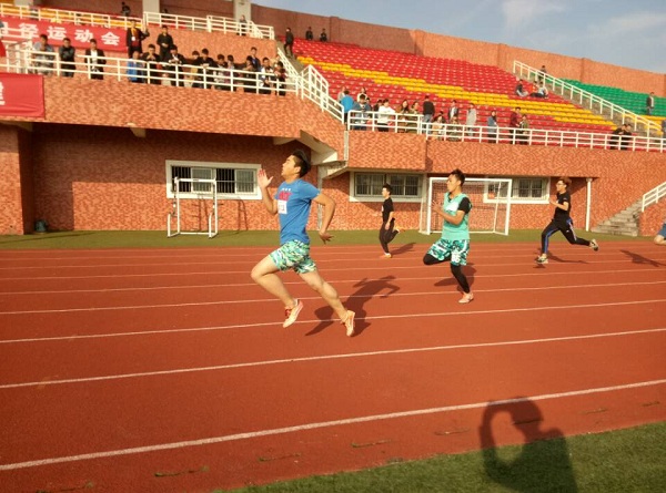 和煦的阳光下,我系运动员斗志昂扬,秉持着勇于超越、勇于拼搏的精神,力求展现自己最好的一面。运动场上依旧是精彩激烈的角逐,在女子丙组100米决赛中,我系夏舒老师势如破竹,顺利拿下第一名,极大的鼓舞了我系运动员的士气。