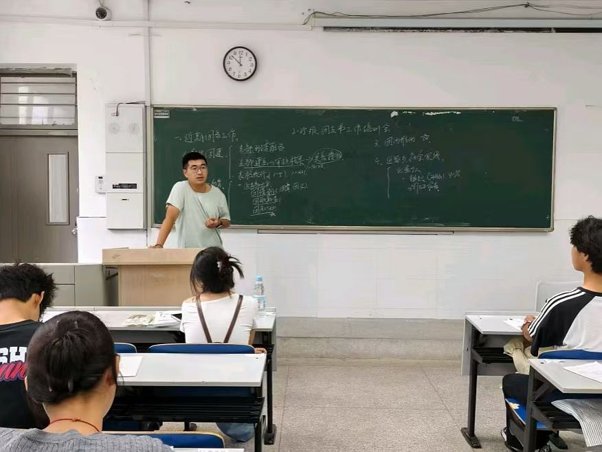 本次会议围绕四项主要内容展开。第一部分为“新生团建”,臧老师简要介绍了团支部组建流程与组织架构,强调了团支部在班级建设中的引领作用,鼓励团支书积极搭建沟通桥梁,营造团结向上的集体氛围。第二部分重点讲解“四个一”教育活动。详细阐述了“一次团情学习、一次团歌教唱、一次团日活动、”的具体要求。团情学习需围绕团章、团史专题学习,确保团员明晰身份责任增强团员意识,通过团歌教唱激发组织荣誉感,通过主题团日活动提升凝聚力。第三部分聚焦“团内推优”工作。强调推优是党团衔接的重要环节,须坚持公平、公正、公开原则,严格把关思想表现、学业成绩与群众基础,真正将政治坚定、品学兼优的团员推荐出来。最后,会议介绍了“返家乡”社会实践活动,分享了往届优秀个人的先进事迹,鼓励新生团支书积极投身到活动中,收获实践经验,增长个人才干,在服务基层中锤炼意志,提升能力,不负青春韶华,勿虚度大学时光。