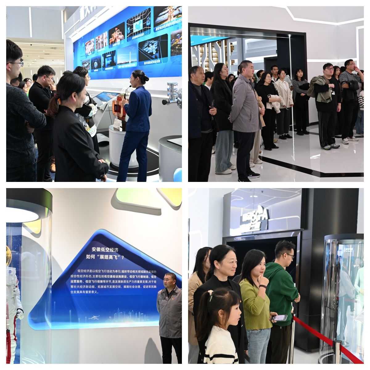随后,教师队伍前往安徽创新馆,聚焦前沿科技与创新实践展开探索。作为展示安徽科技创新成果的核心窗口,创新馆内“量子科技”“人工智能”“高端制造”等领域的前沿成果,让教师们沉浸式感受到了安徽省在科技创新领域的跨越式发展。在量子通信、新能源汽车核心技术等展区,教师们认真聆听讲解,不时围绕技术原理、产业应用与展馆工作人员深入交流,大家纷纷表示,安徽创新馆展现的“敢为人先、勇攀高峰”的创新精神,为电气学院的学科发展与教学改革提供了新思路,未来将进一步推动科研成果转化,培养更多适应新时代需求的创新型人才。