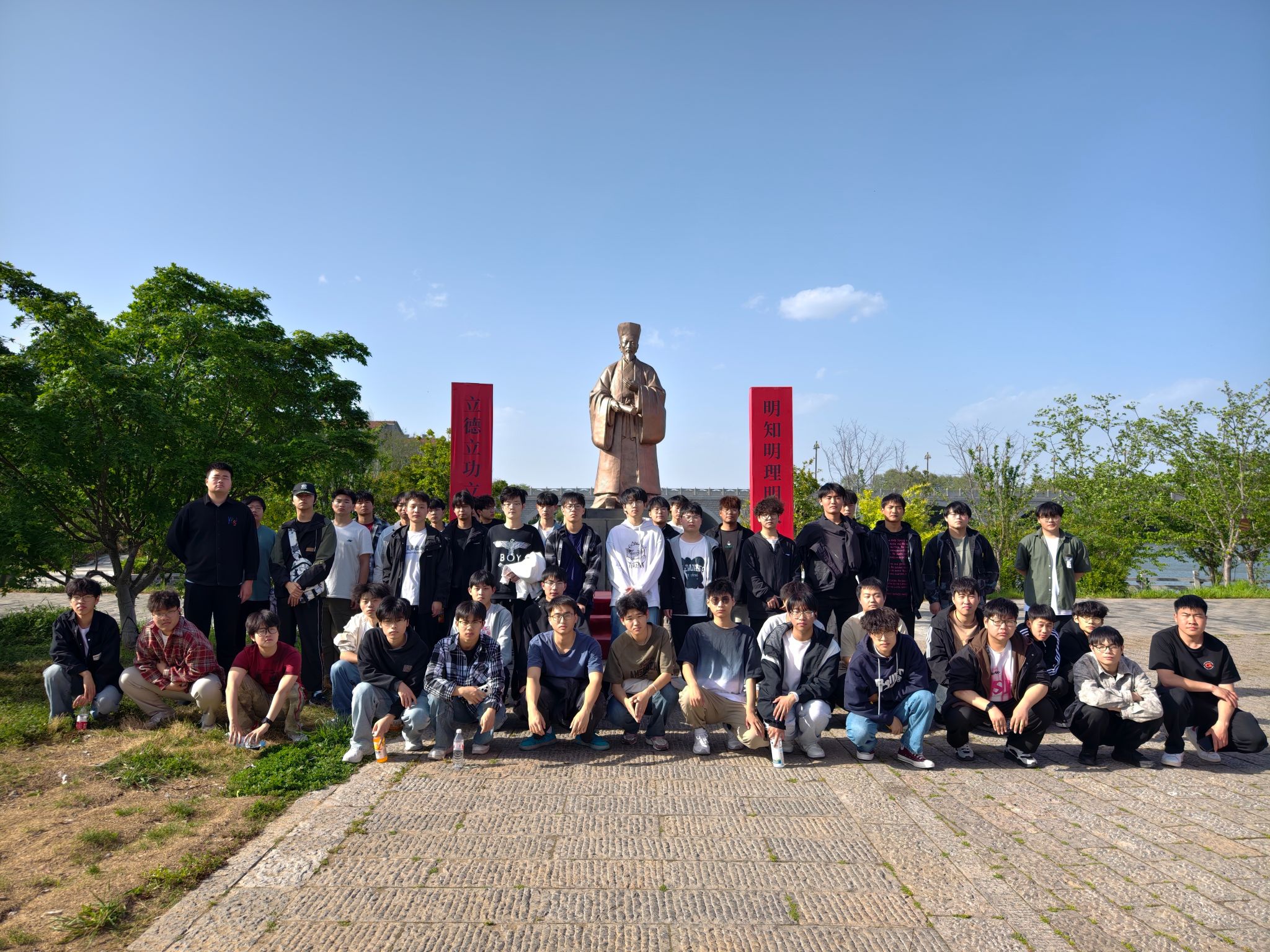 接着,师生们前往遵阳街,开启了一场历史文化探索之旅。在遵阳街讲解员的引导下,大家走进老粮食局大楼、老汽车站、胡家大楼等历史建筑。斑驳的砖墙、复古的门窗,无声诉说着老东关的往昔岁月。讲解员详细介绍了这些建筑在不同历史时期的功能与意义以及政府在历史文化保护方面采取的措施。而王阳明雕像则让同学们感受到了滁州深厚的文化底蕴,王阳明曾在此讲学,其思想对当地文化发展产生了深远影响。同时,同学们也了解到遵阳街在保护历史文化的基础上,积极探索创新发展模式,通过引入特色商业、文化创意产业等,让古老街区焕发新活力。这种历史与现代交融、保护与发展并重的理念,给同学们留下了深刻印象。