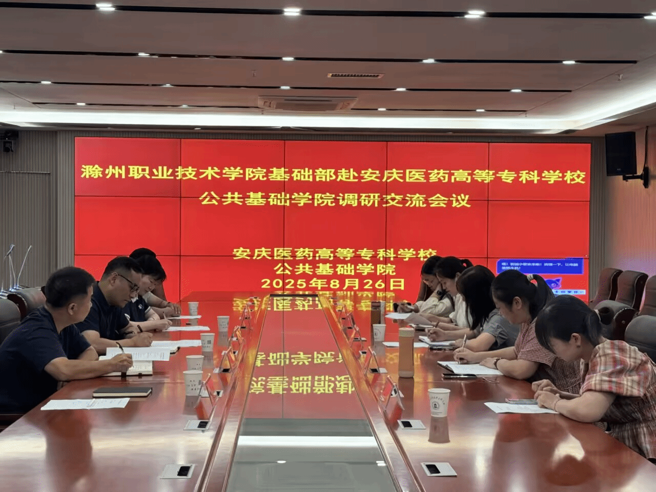 为进一步加强校际沟通交流,推进高校间相互学习,8月26日-27日,基础教学部赴安庆医药高等专科学校开展调研学习和学术交流活动。基础教学部副主任(主持工作)刘杰、人文素养教研室主任平燕和基础教学部有关教师参加调研交流。