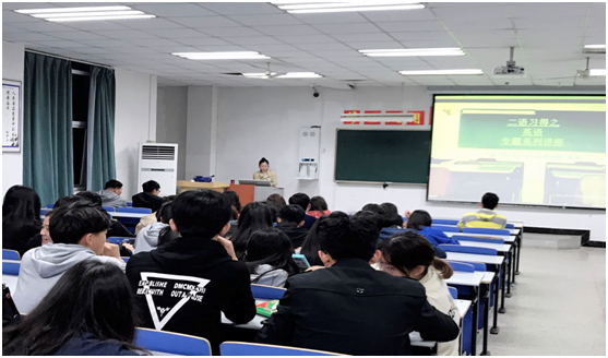 2019年4月30日晚19:00,陈艳副教授在1109阶梯教室举办了题为“二语习得系列讲座之英语构词法”的学术讲座。全校对英语学习感兴趣的100多名同学认真聆听了此次讲座。