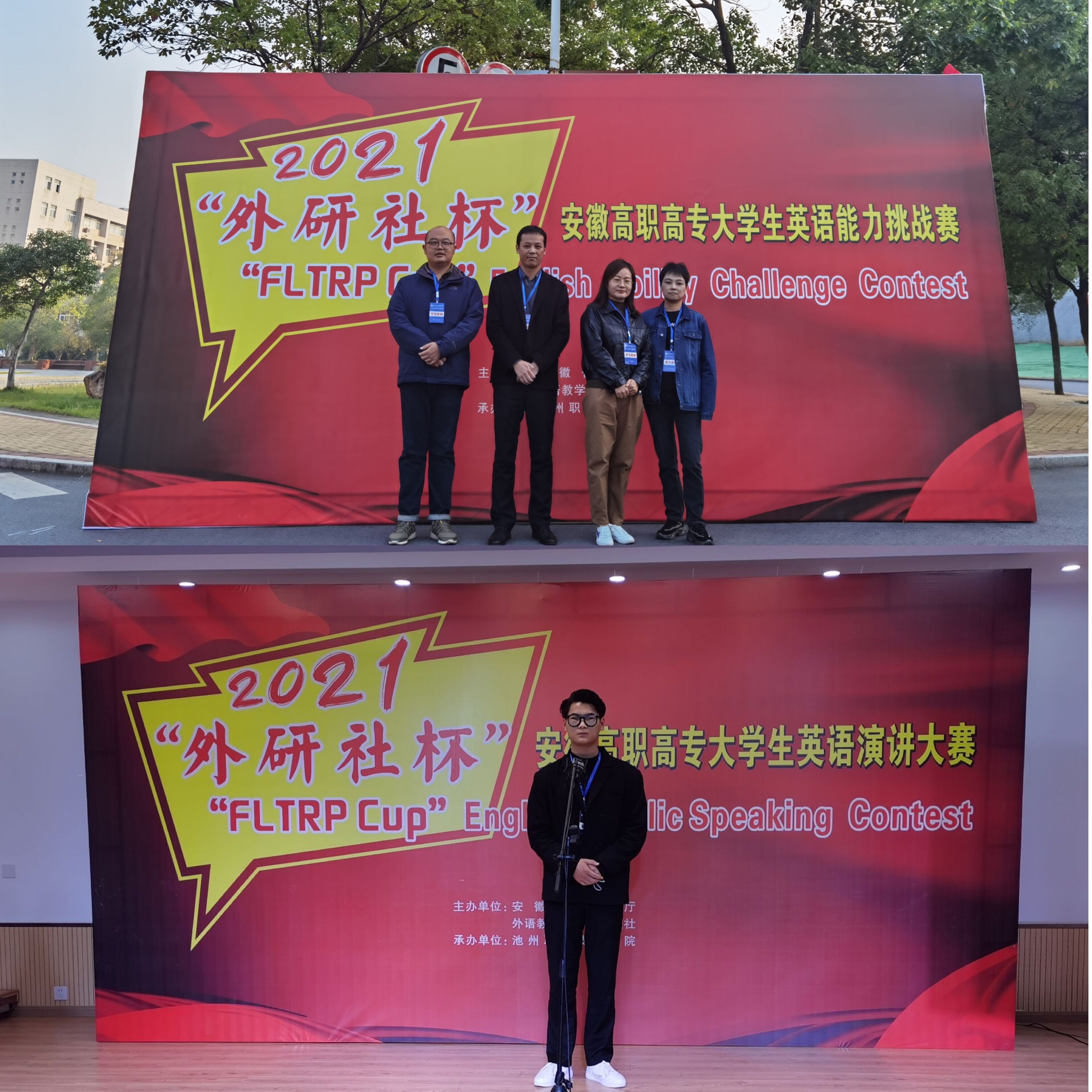 10月23-24日,万象城官网基础教学部外语教研室冯香丽老师带队参加了在池州职业技术学院举办的第十二届“外研社杯”全国高等职业院校英语写作大赛(安徽赛区)和第一届“外研社杯”全国大学生英语演讲大赛(安徽赛区)。本次大赛参赛人员多,覆盖范围广,全省共计50多所高职院校参与了此项赛事,其中写作大赛公共组92名选手,演讲大赛公共组36名选手。经过激烈角逐,万象城官网王润清老师和郭敏老师指导的20级计算机应用技术专业汪育萍同学、陆杨老师指导的20级空中乘务专业秦庆龙同学在比赛中脱颖而出,分别获得安徽赛区写作大赛二等奖和演讲大赛三等奖的好成绩。