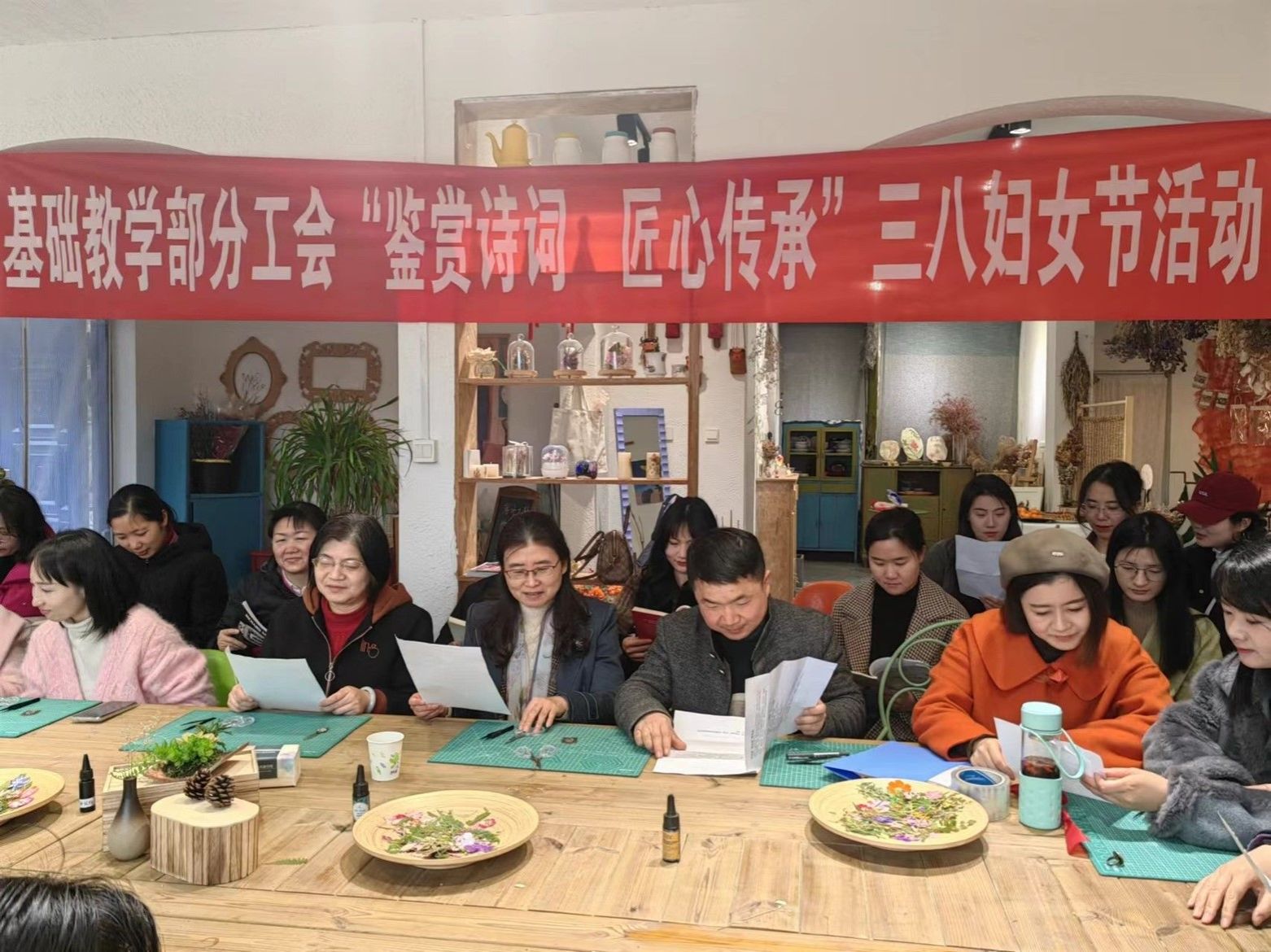 阳春三月,春光明媚,在第114个“三八”国际劳动妇女节到来之际,3月13日,基础教学部分工会精心策划了一场鉴赏诗词,匠心传承活动。此次活动不仅是对中华优秀传统文化的弘扬,更是对女性优雅与力量的展示,旨在凝聚巾帼力量,共同书写时代华章。