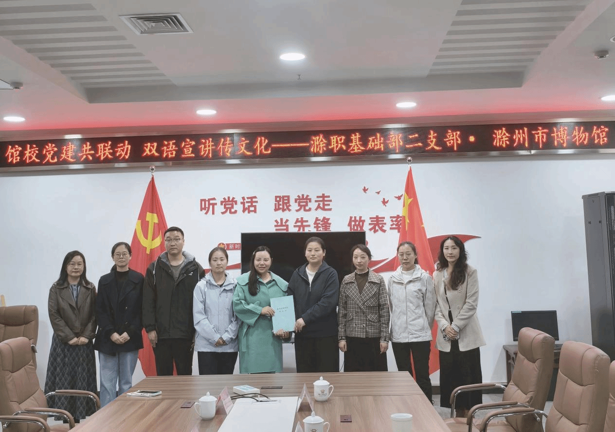 为丰富党组织活动形式,进一步提升党员党性修养与文化自信,11月7日下午,基础教学部教工二支部组织全体党员前往滁州市博物馆,开展“双语宣讲传文化”主题共建活动。