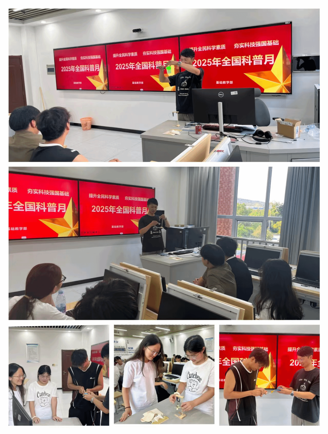 为响应滁州市科学技术协会《关于开展首个全国科普月活动的通知》,基础教学部于9月15日在综合楼201语音室举办“提升全民科学素质 夯实科技强国基础”主题科普讲座。本次讲座邀请基础教学部青年教师和对科学知识感兴趣的学生参加。讲座以“榜样故事+趣味实验”的形式,让科学知识变得生动易懂,现场氛围活泼热烈。