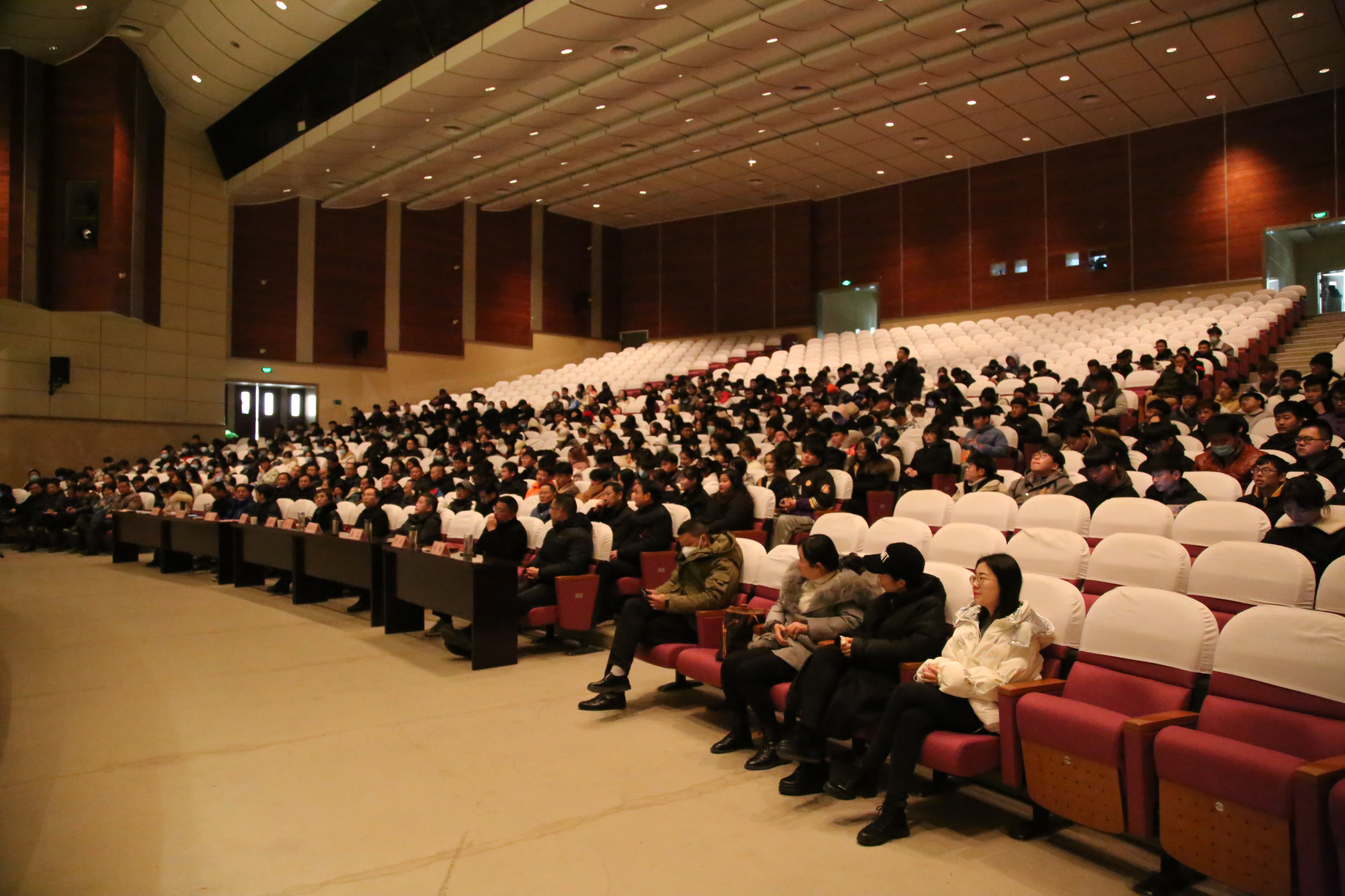 12月15日,学校在大礼堂召开党委理论学习中心组(扩大)学习暨 “安徽星空院线-allwincity万象城官方网站校园影院”首映揭牌仪式。安徽广电传媒产业集团党委委员、工会主席、安徽电影集团董事长胡滨,安徽电影集团党总支委员、副总经理方结红,校党委书记李柱梁,校党委副书记、校长许雪峰,校领导杨华龙、江洁、汪上、陈学军、穆松、李平权、李超出席了揭牌仪式,安徽电影集团有关人员,学校各教学院部、各部门的负责同志,教师代表及学生代表共400余人共同参加了揭牌仪式。揭牌仪式由校党委委员、副校长汪上主持。