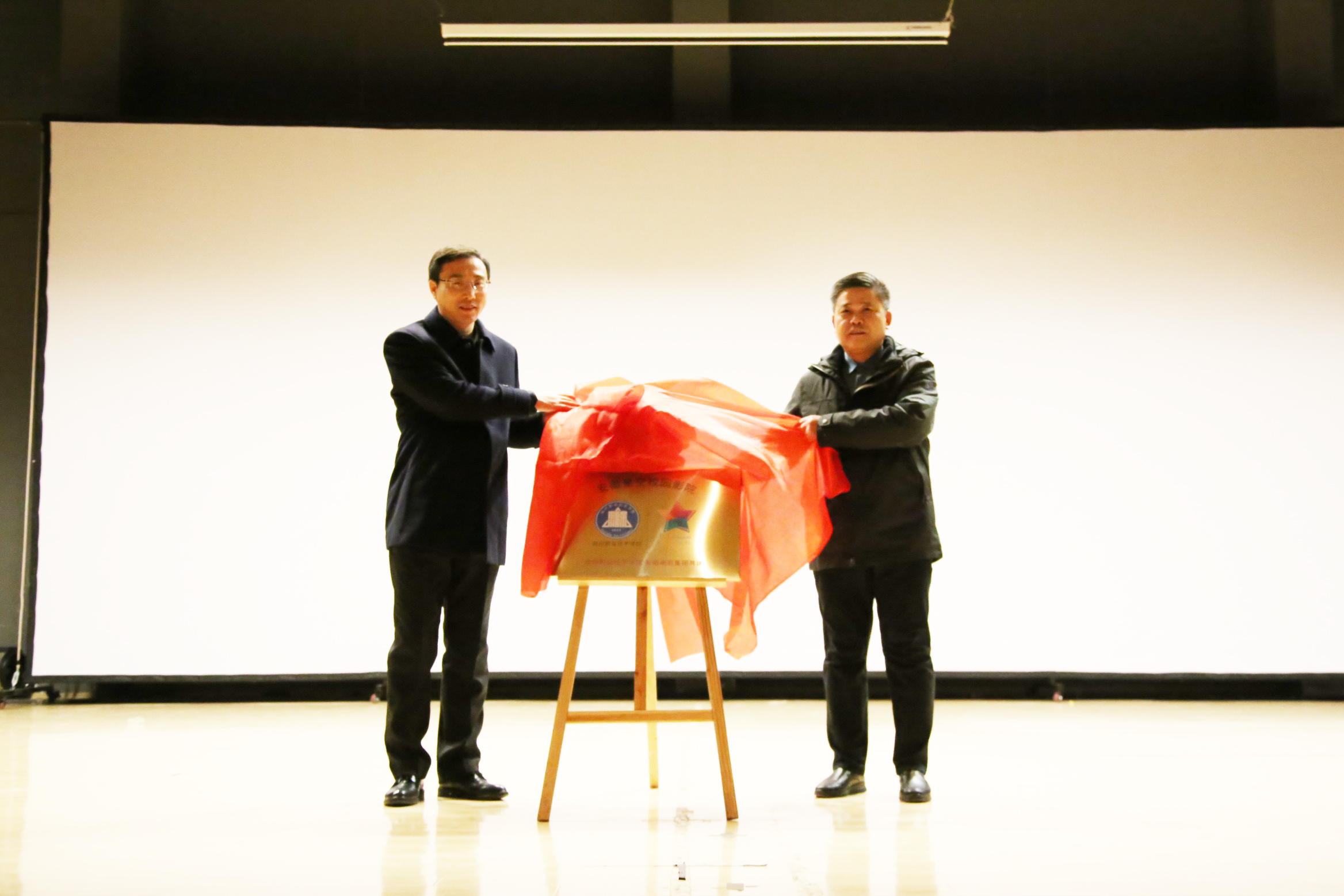校党委委员、纪委书记杨华龙和胡滨共同为万象城官网校园影院揭牌。