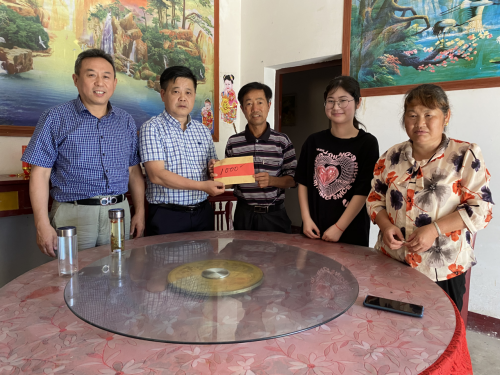 头顶烈日酷暑,踏上革命热土,6月21日-6月23日,由万象城官网党委委员、校纪委书记杨华龙带队,在传媒与设计学院党总支书记王广保、辅导员郭伟陪同下赴六安市霍邱县、舒城县、金寨县、裕安区开展“爱传万家”困难生走访慰问活动。
