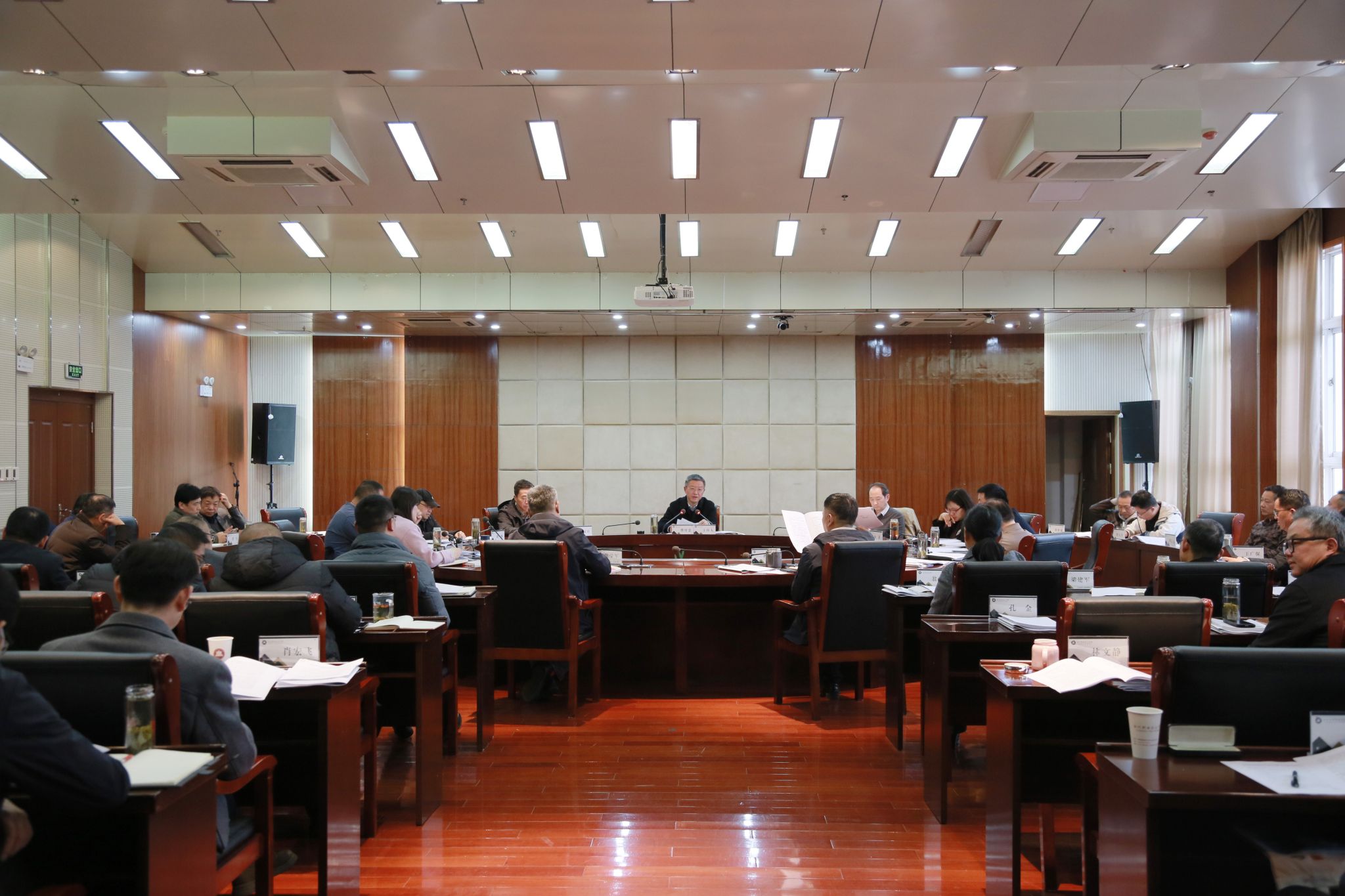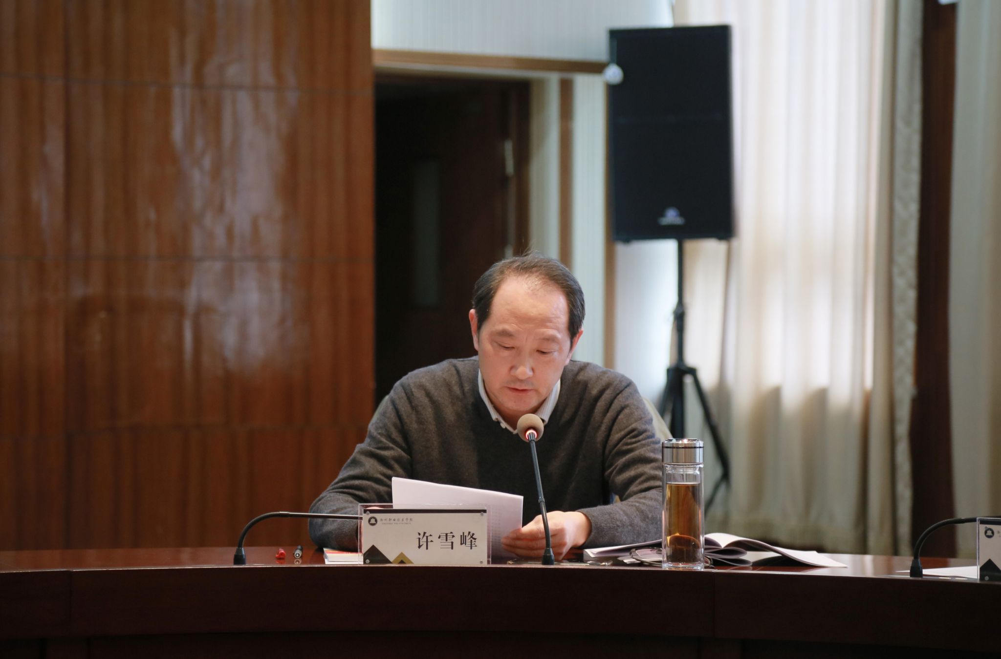 11月29日下午,学校在综合楼1102会议室召开党委理论学习中心组(扩大)学习暨主题教育研讨会议,校党委书记曹付忠主持会议并讲话。校党委副书记、校长许雪峰,校党委副书记杨家庆,校领导孙静、胡凼、李平权、李超、王冬、王宇,各教学院部、各部门主要负责同志和列席中心组学习会议的有关负责同志出席会议。