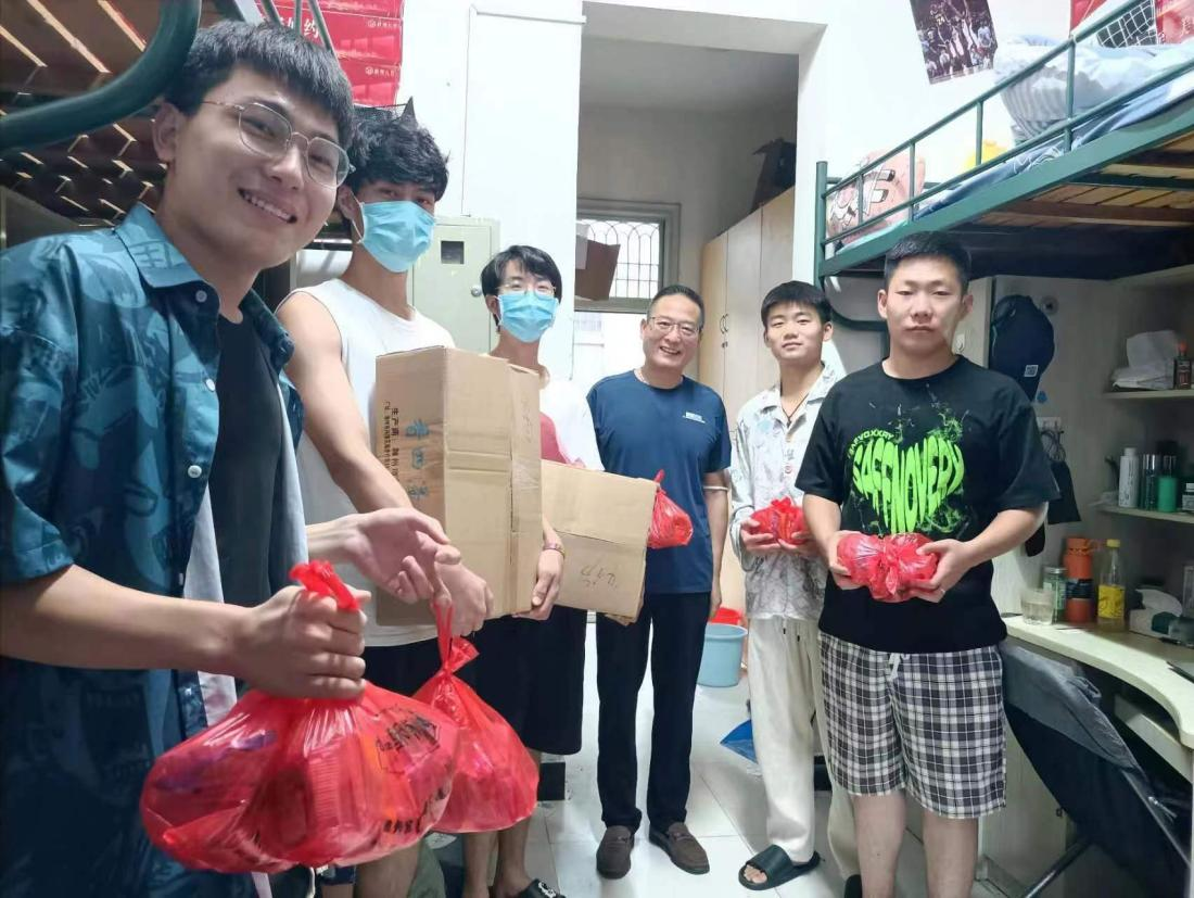 “今夜月明人尽望,不知秋思落谁家”,在这中秋佳节即将到来之际,智能制造学院几十名学生,因为疫情原因无法离校回家。为了让学生缓解思乡之情,感受到来自学校的关心和温暖,智能制造学院在校领导的组织下,学院院长的带领下,于9月9日下午带着月饼前往学生宿舍开展中秋走访慰问活动。