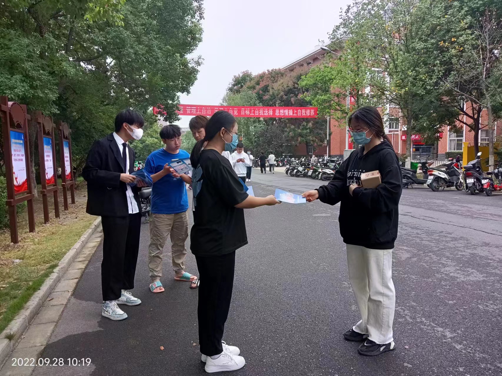 开学季,为更好地帮助和引导学生顺利度过入校适应阶段,奠定大学生活良好基础,学生工作处健康教育科结合实际,针对高职学生心理特点编撰了《滁职开学季学生心理调适》折页;并于9月28日,组织心理协会成员深入校园一线面向学生发放,积极主动服务于学生身心健康成长。
