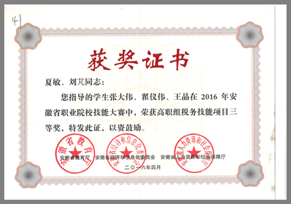 (税收技能项目三等奖)
