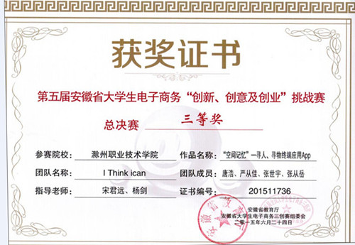 (电子商务“创新、创意及创业”总决赛三等奖)