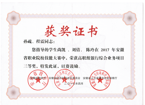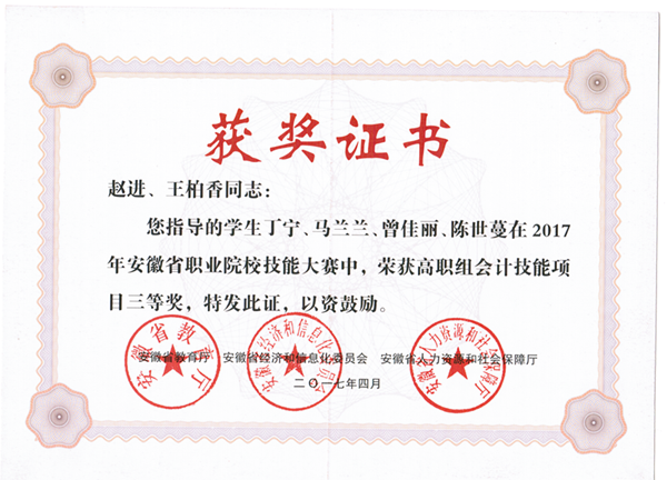 (会计技能项目三等奖)