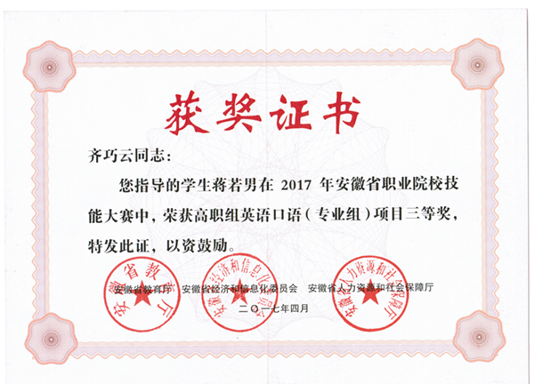 (英语口语项目三等奖)
