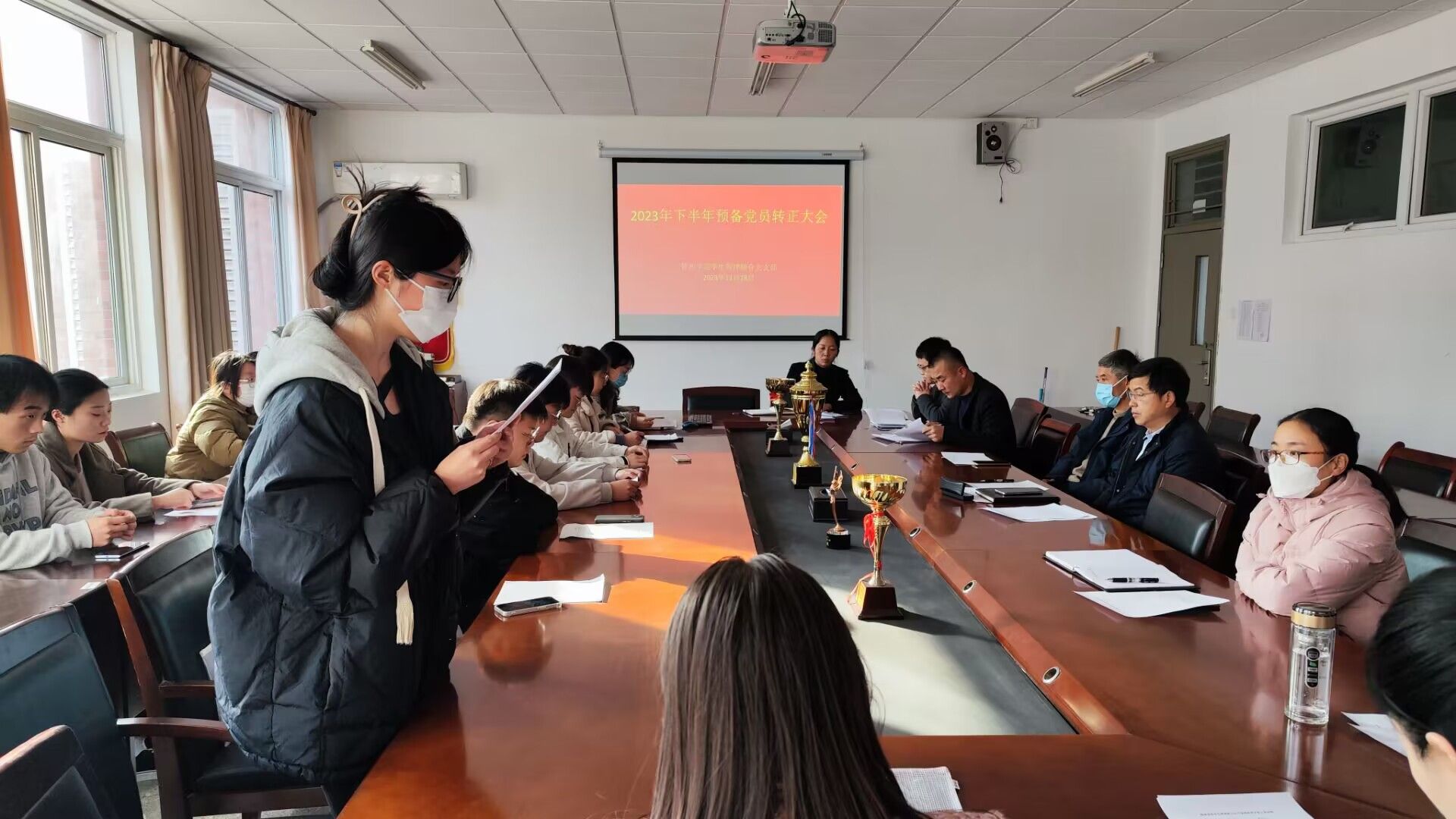 为进一步加强党支部建设,增强党员队伍的生机和活力,2023年11月28日下午,管理学院学生管理联合党支部在致真楼1405会议室召开预备党员转正大会,大会讨论关于王宝玉、陈倩倩两位同志的预备党员转正问题。会议由学生管理联合党支部书记李腾飞主持,支部部分党员参会。